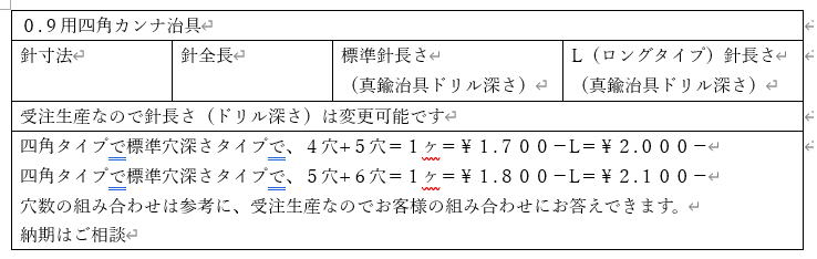 イカ針(カンナ)0.9関係のページ